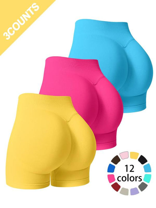 Women'S Solid Color High Waist Gym Shorts, Breathable Comfortable Skinny Shorts for Yoga Gym Workout Running Cycling, Ladies Sportswear for Summer, Activewear