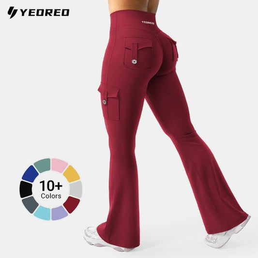 YEOREO Coreflex Women'S Workout Flare Leggings with Pockets Hidden Scrunch High Waisted Cargo Gym Yoga No Front Seam Leggings Flared Joggers Fitness Outfit Camouflage Sports Pants